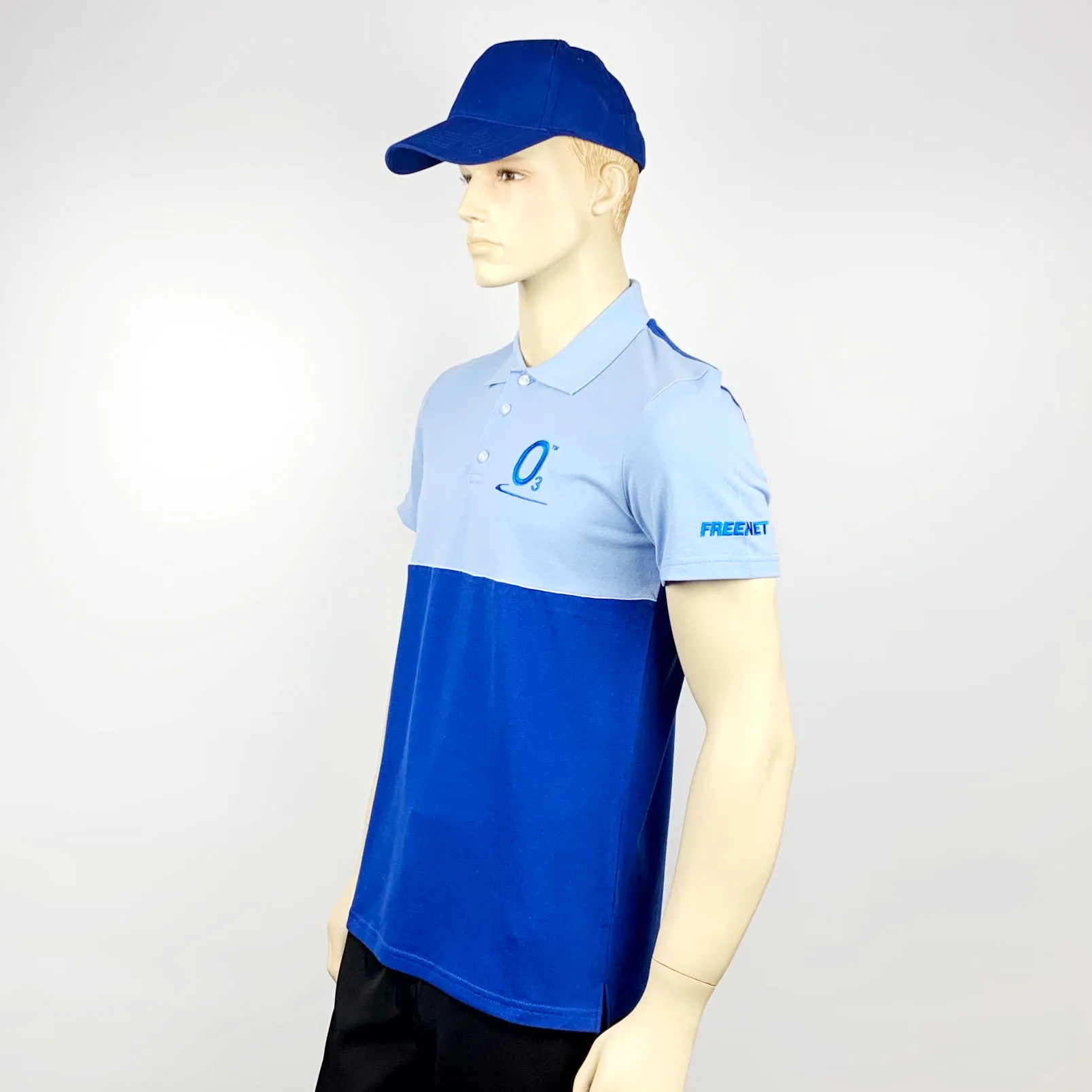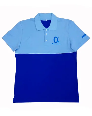 Пошив чоловічої теніски поло з короткими рукавами та з контрастним оздобленням. Планка на три ґудзики. Вишивка логотипа О3 на грудях.