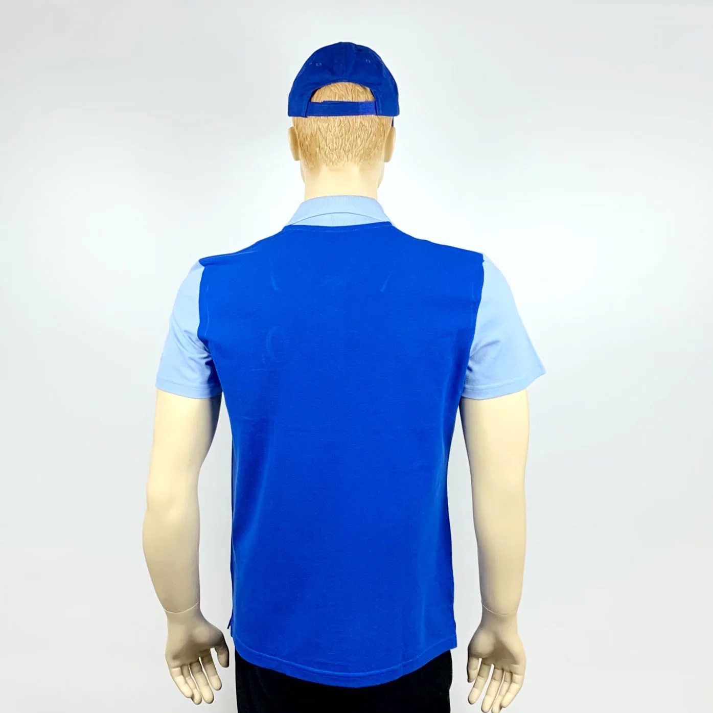 Пошив чоловічої теніски поло №4 з короткими рукавами та з контрастним оздобленням. Планка на три ґудзики. Вишивка логотипа на грудях.