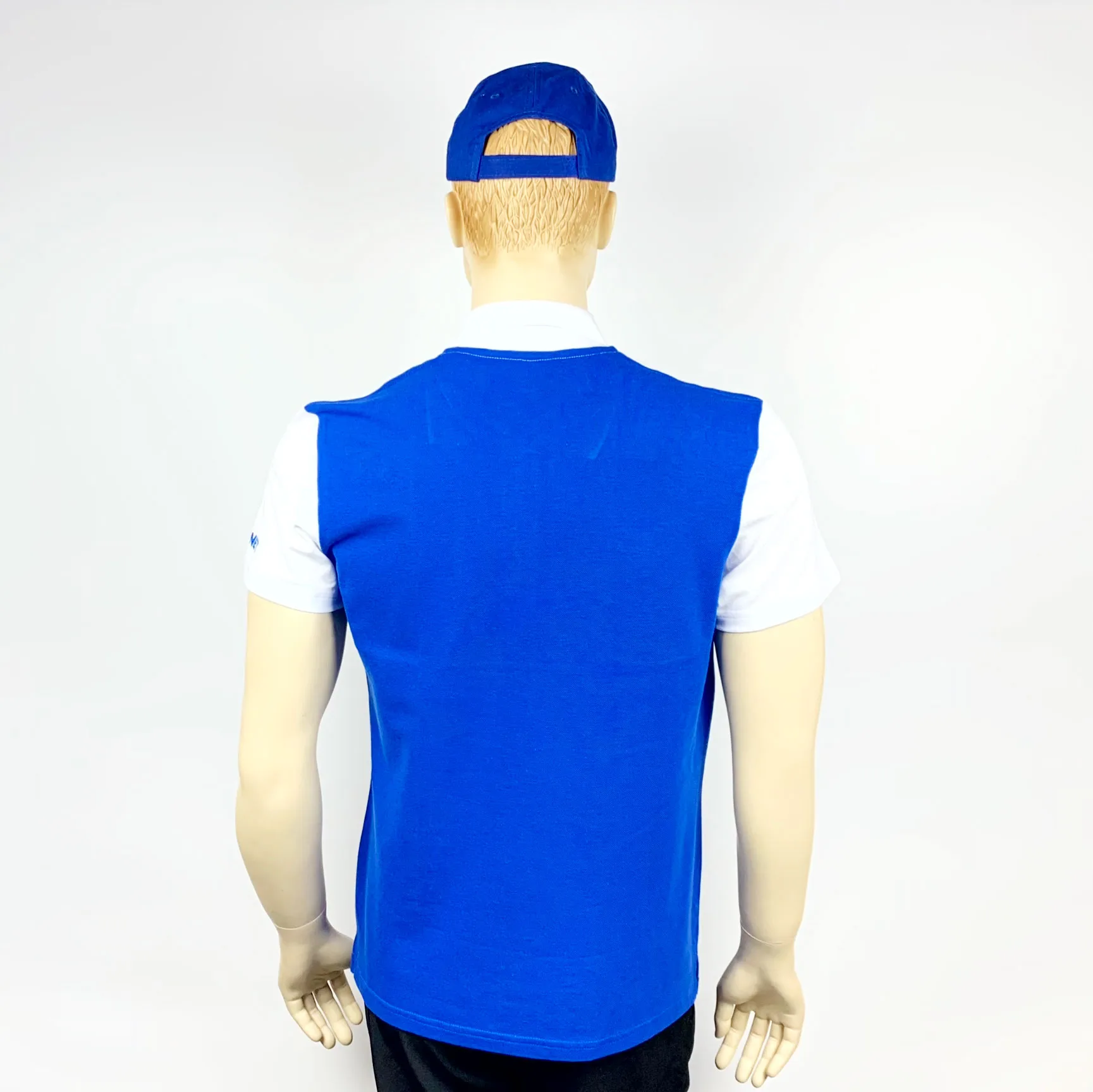 Пошив чоловічої теніски поло №4 з короткими рукавами та з контрастним оздобленням. Планка на три ґудзики. Вишивка логотипа на грудях.