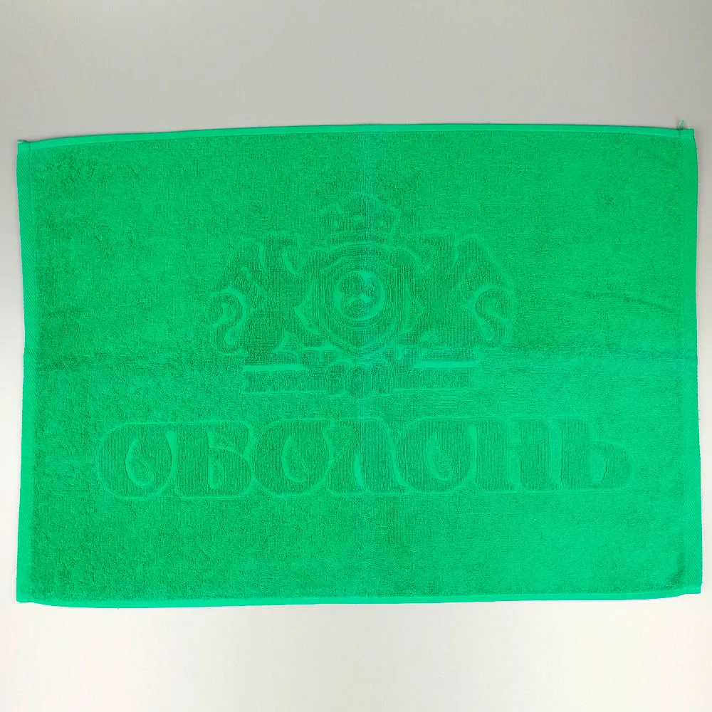 Нанесення логотипа Оболонь на махровий рушник виконано рельєфним способом.