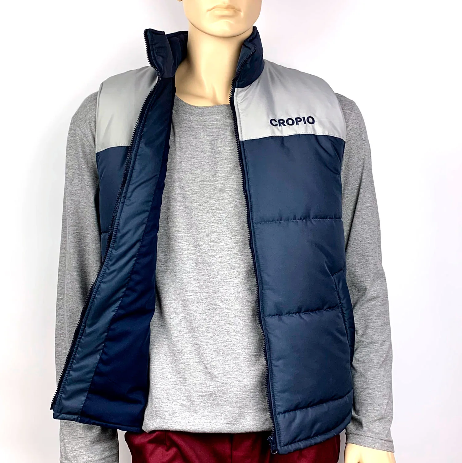 Утеплений жилет (модель № 6) пошитий на синтепоні в фірмових кольорах з вишивкою логотипа CROPIO.