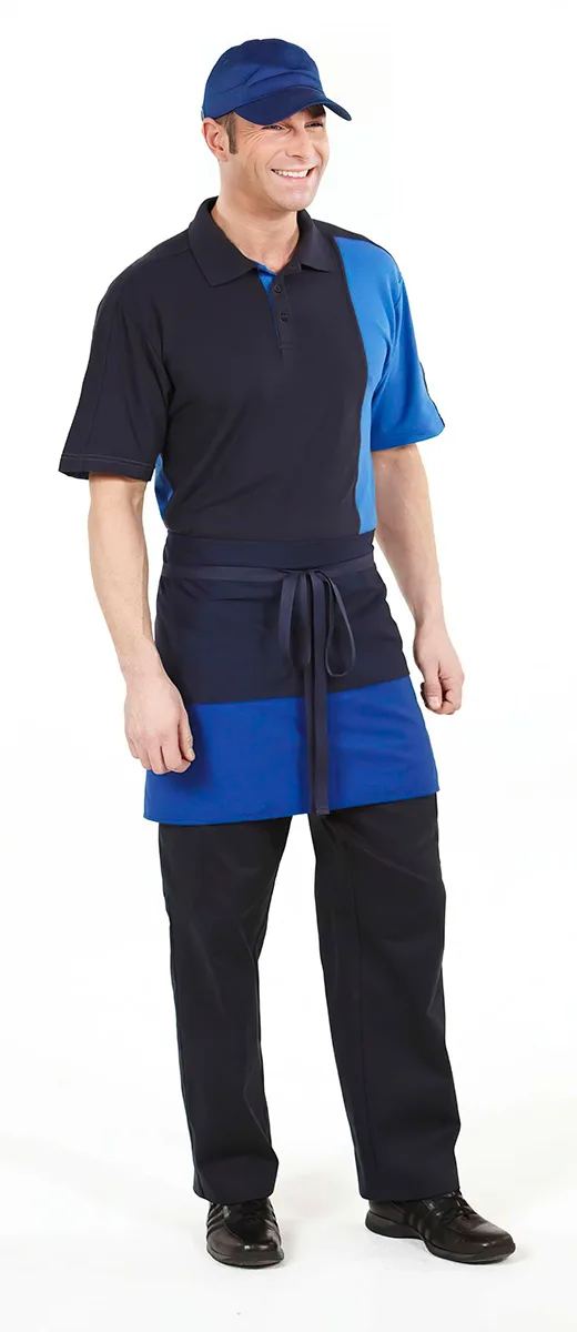 Фартук официанта передник 80х45 см. Пошит из смешанной ткани в контрастных цветах в сочетании темно-синего и василькового цвета.