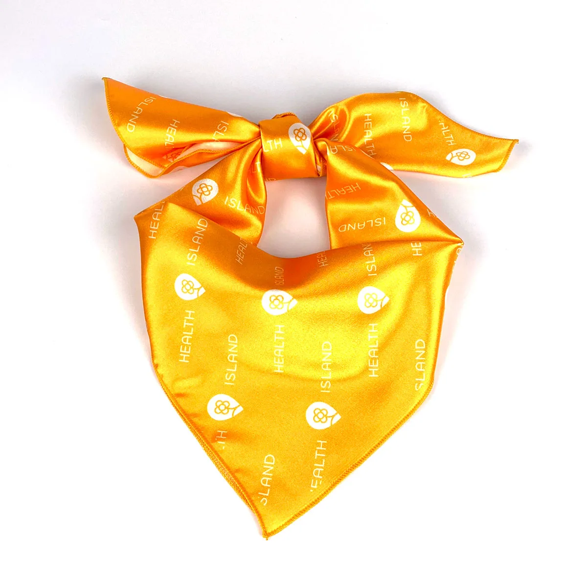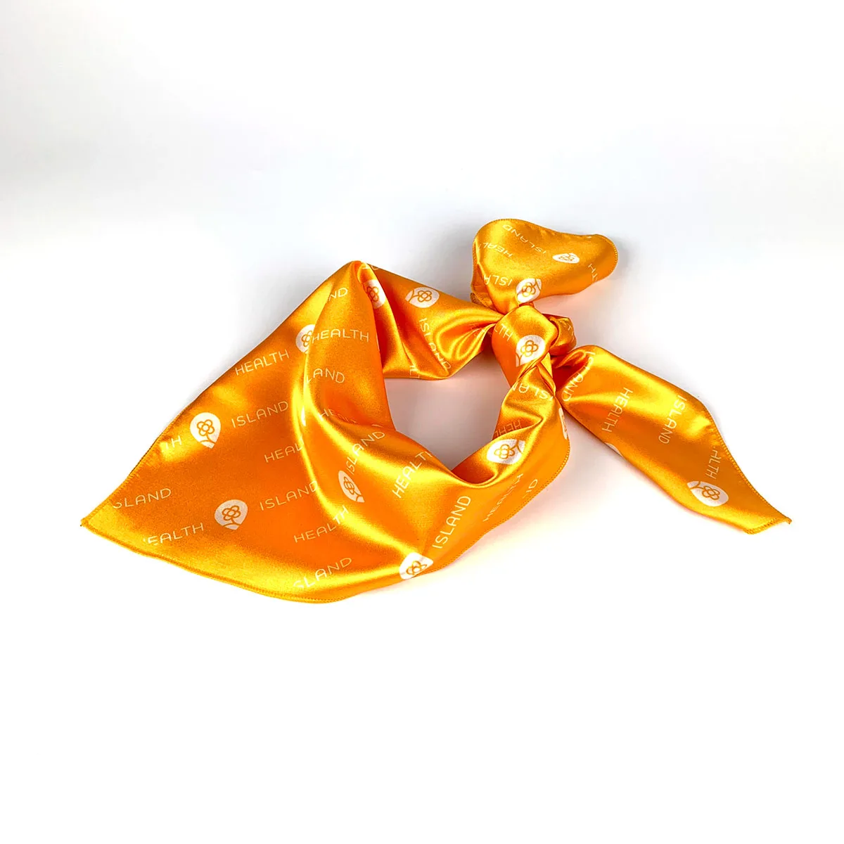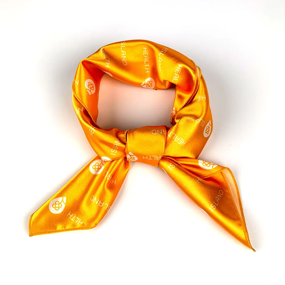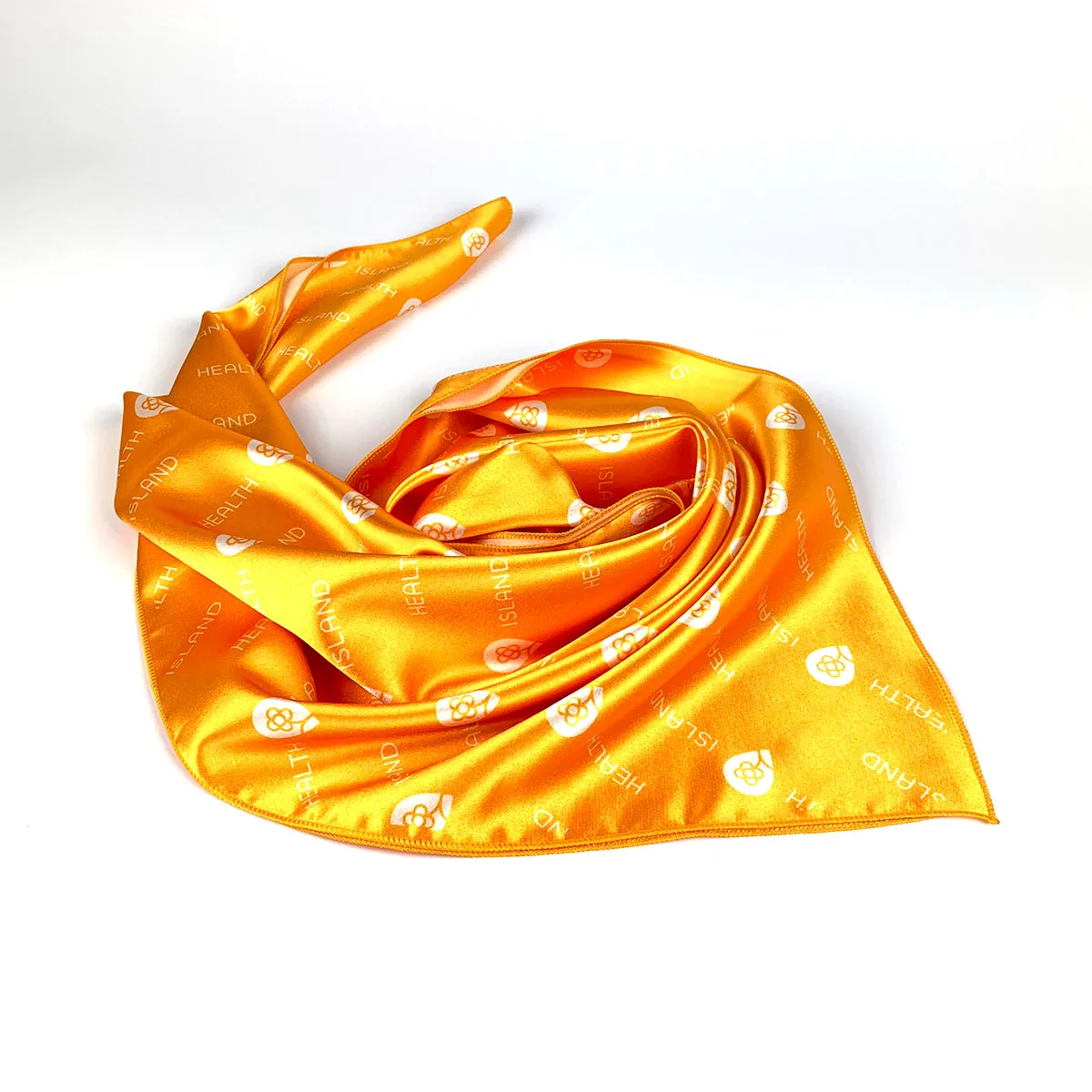 Косынка с логотипом в корпоративных цветах изготавливаются на заказ.