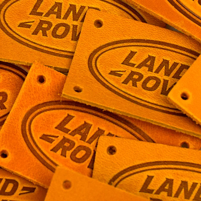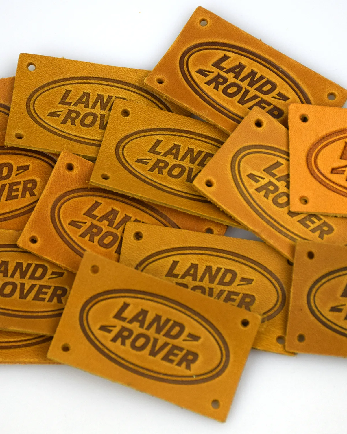 Этикетки кожаные с логотипом Land Rover. Производство на заказ