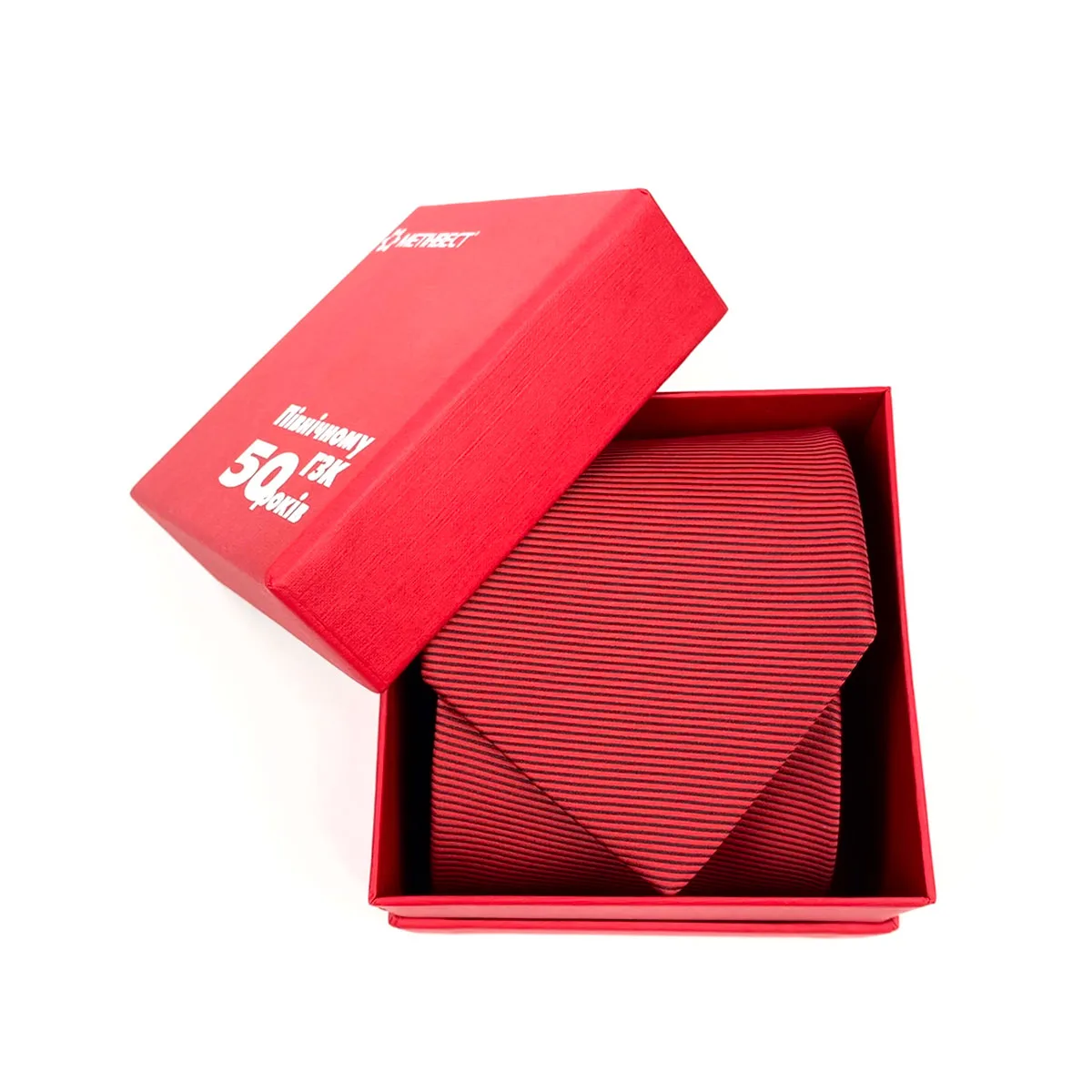 Галстуки могут быть изготовлены в фирменных цветах с логотипом заказчика.